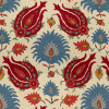 The Brunschwig & Fils Fabric Kashmiri Linen Print Pomegranate/Blue is 53.54 wide and contains LINEN - 100%. It is sampled in Fabric and the pattern repeat size is