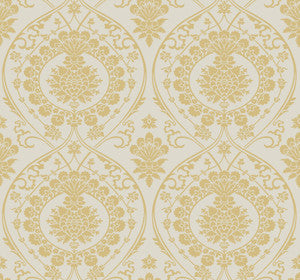 York Wallcoverings Wallpaper Imperial Damask Off White & Gold