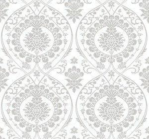 York Wallcoverings Wallpaper Imperial Damask White & Silver