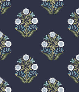 York Wallcoverings Wallpaper Sophie Navy Floral Medallion Peel & Stick