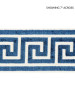 Trim Greek Key Velvet Tape/Indigo Sc 0005T3279 is 4" wide and contains 50% VISCOSE 50% COTTON. It is sampled in ORIANA and the pattern repeat size is Horizontal: 2.875" and Vertical: and is manufactured in INDIA.