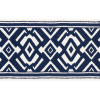 The Schumacher Trim Avalon Tape Blue 70664 is 5.5 wide and contains COTTON 70% SPUN POLYESTER 30%. It is sampled in COUTURE TRIMS and the pattern repeat size is
