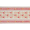 The Schumacher Trim Pica Bella Hand Blocked Tape Pink & Orange 79100 is 3.25 wide and contains LINEN 100% . It is sampled in JACARANDA and the pattern repeat size is